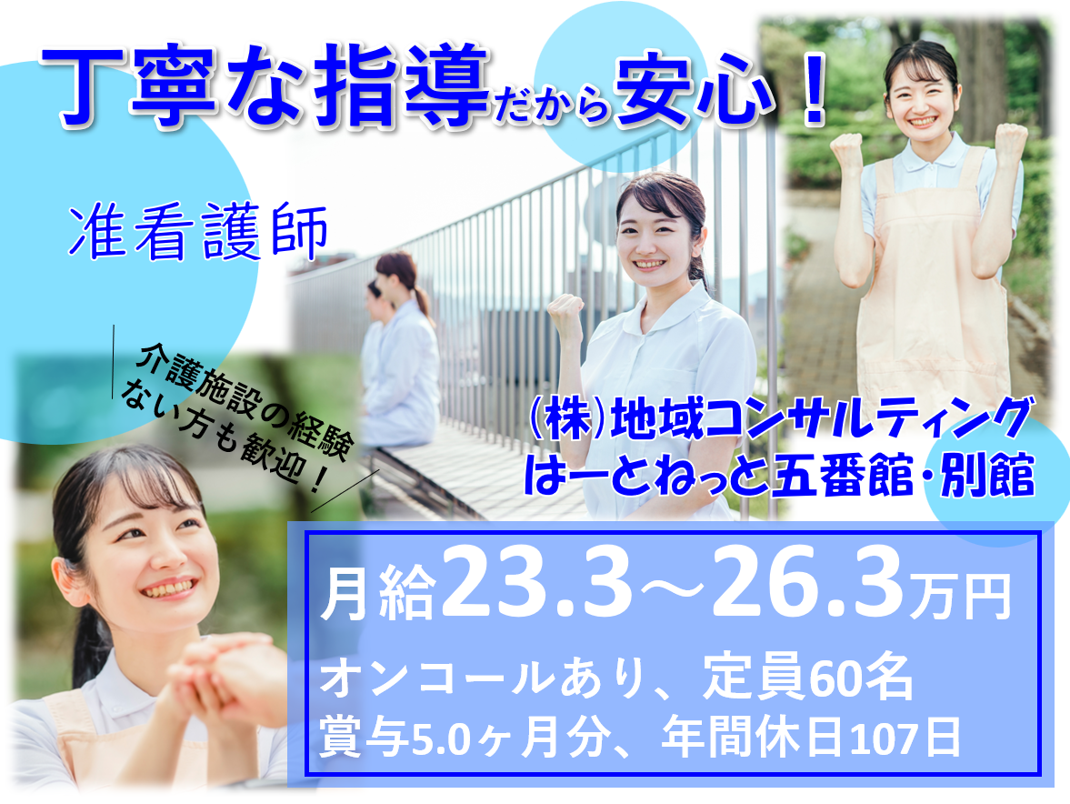 【宮崎市】はーとねっと五番館・別館◆賞与5ヵ月◆正社員の准看護師 63B0201b
