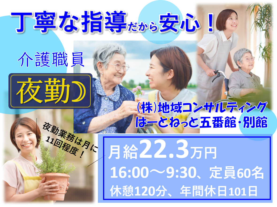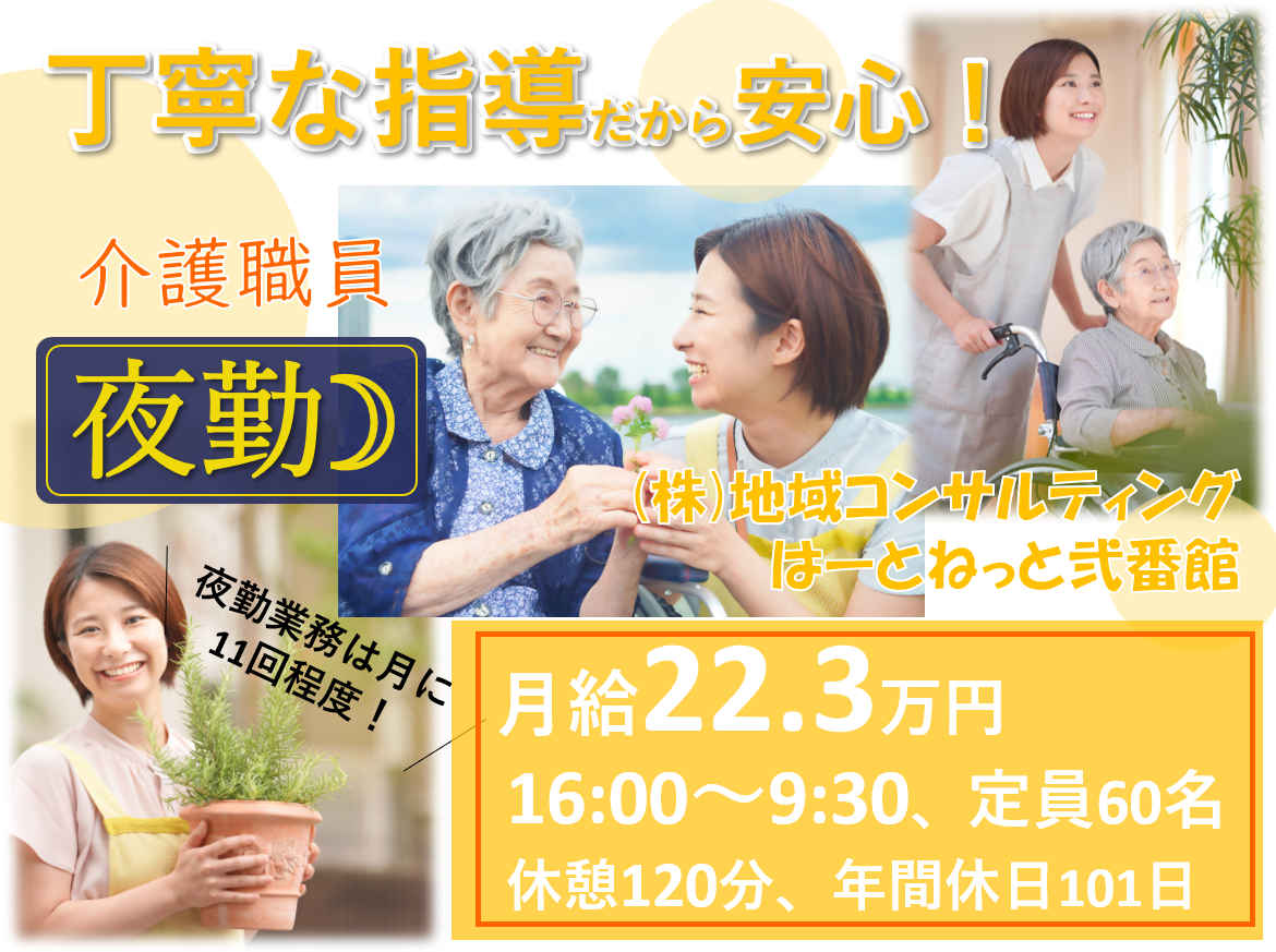 試用期間3か月(同条件)特別養護老人ホームの介護職(夜勤専従)のお仕事です。