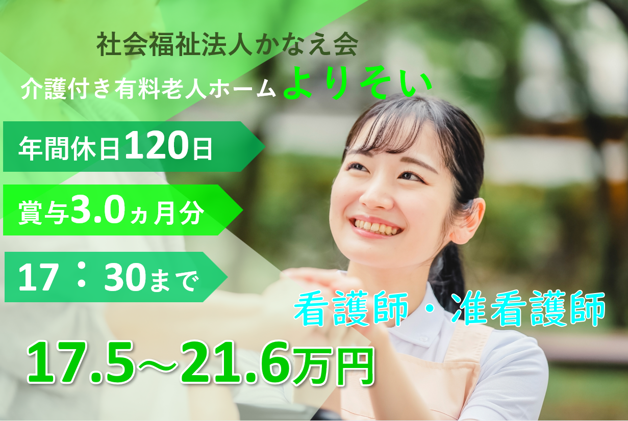 正社員給与月給 175,000円~216,200円交通宮崎駅から車で5分勤務時間変形労働時間制(1ヵ月単位) (1)8:30~17:30(休憩60分) ※時間外労働時間 月平均1時間有料老人ホームの看護師のお仕事です。